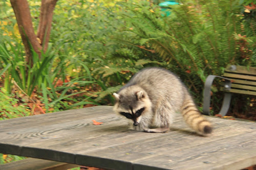 We loved watching the antics of the raccoons. Our first sighting was of them raiding the