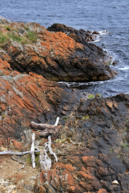 It was interesting to see a few of the red lichen covered rocks that Tasmania is famous for also here, plus a number of late blooming wildflowers.