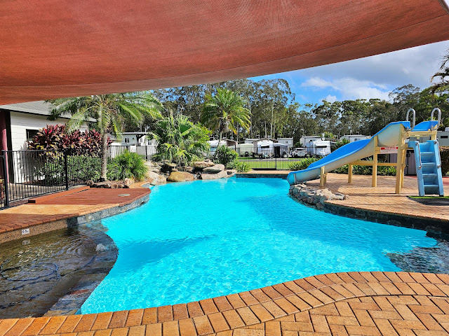 Sunset Caravan Park have locked us in as permanents from mid June to Christmas when they require the site for the Christmas break. That's ok with us. We will go bush for those weeks and lock the site in again for the next year if we like it. I showcase our new site in the video below. It's a small caravan park that is only 300 metres from the beach (yes you can hear the surf) and also to the Bowling Club and shops.
